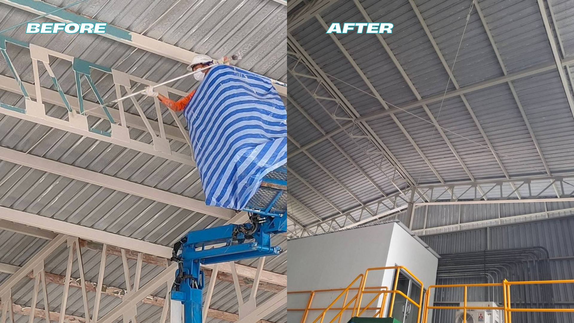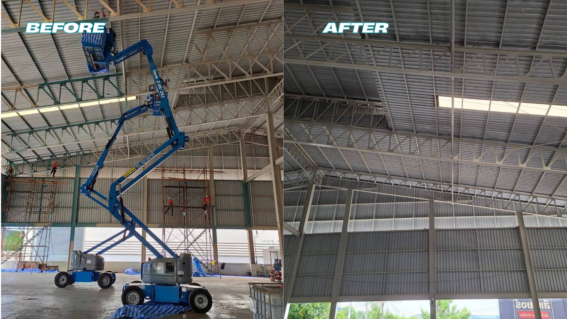 ใช้สีเหล็กคุณภาพสูง เช่น สีอีพ็อกซี่และโพลียูรีเทน ช่างทาสีเหล็กที่ชำนาญงาน ทำงานได้ในที่สูงและโครงสร้างซับซ้อน