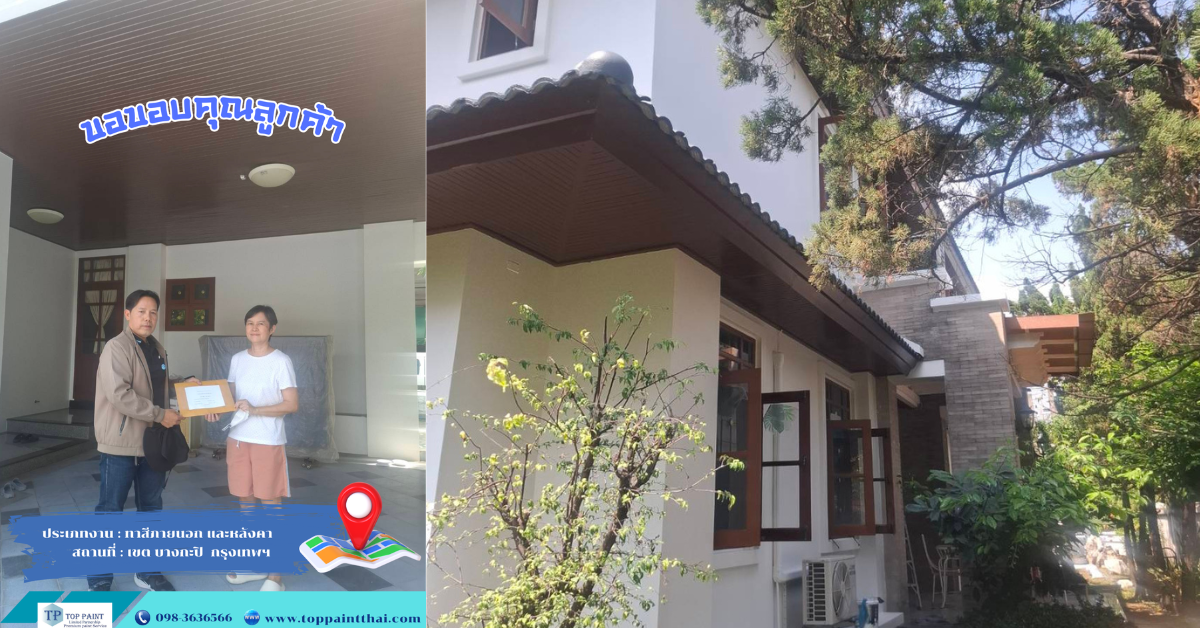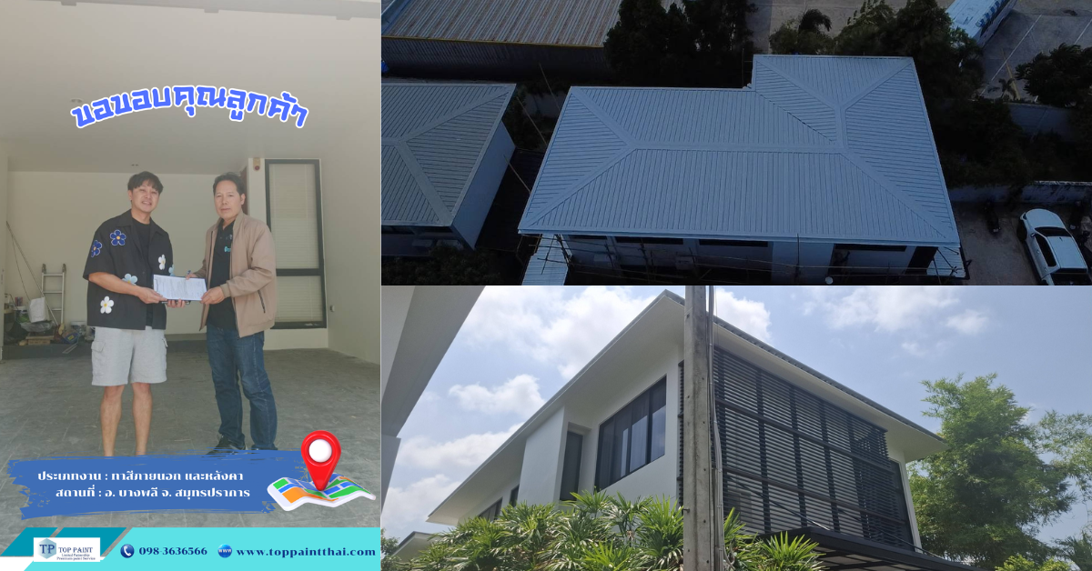 การทาสีภายนอกบ้านกับ Top Paint เป็นการลงทุนที่คุ้มค่า: คุณจะได้งานสีคุณภาพสูง ราคาชัดเจน ทีมช่างมืออาชีพ และผลลัพธ์ที่สวยงาม ทนทาน ติดทนนาน